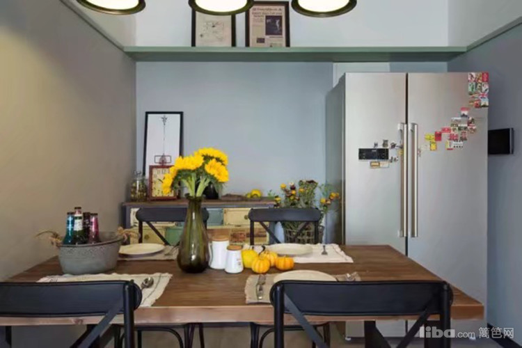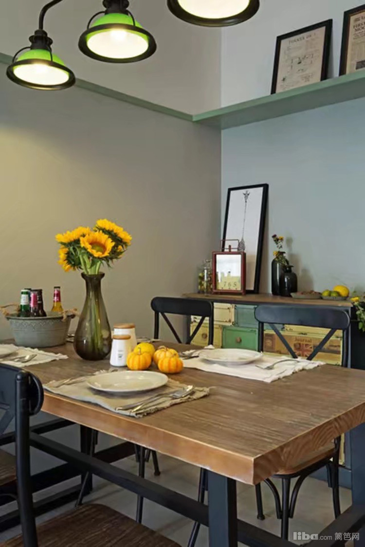 彩色复古餐边柜不仅提供了收纳功能,还为整个空间增加了亮点