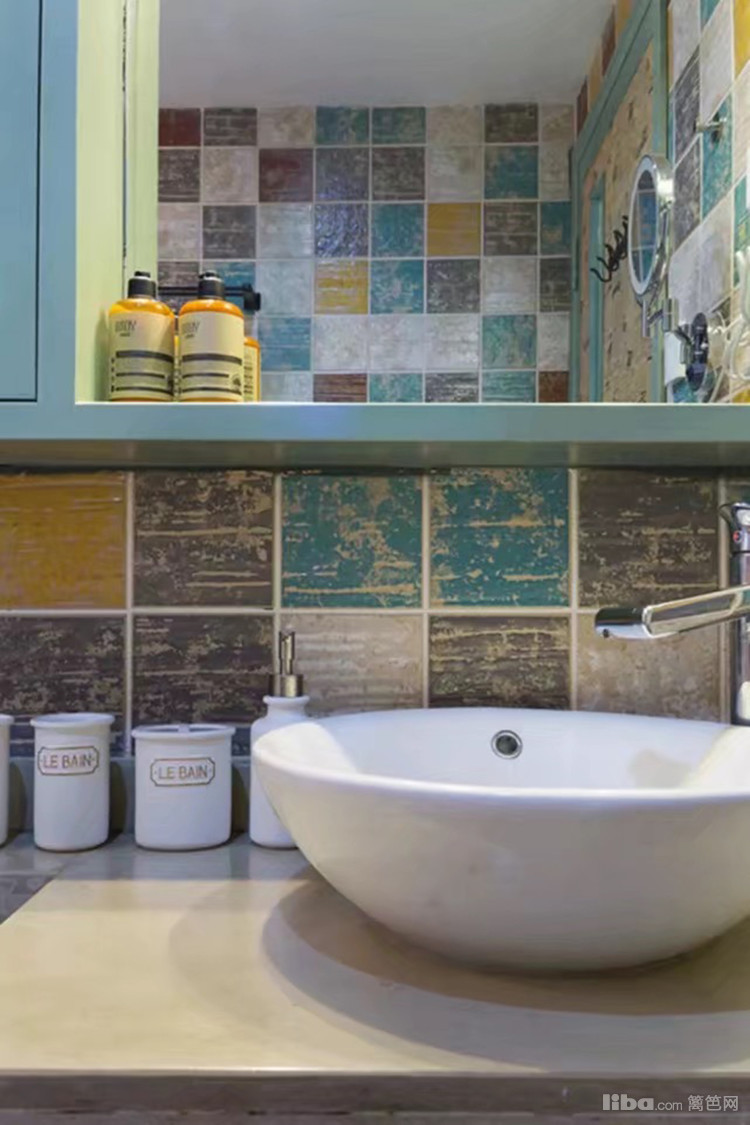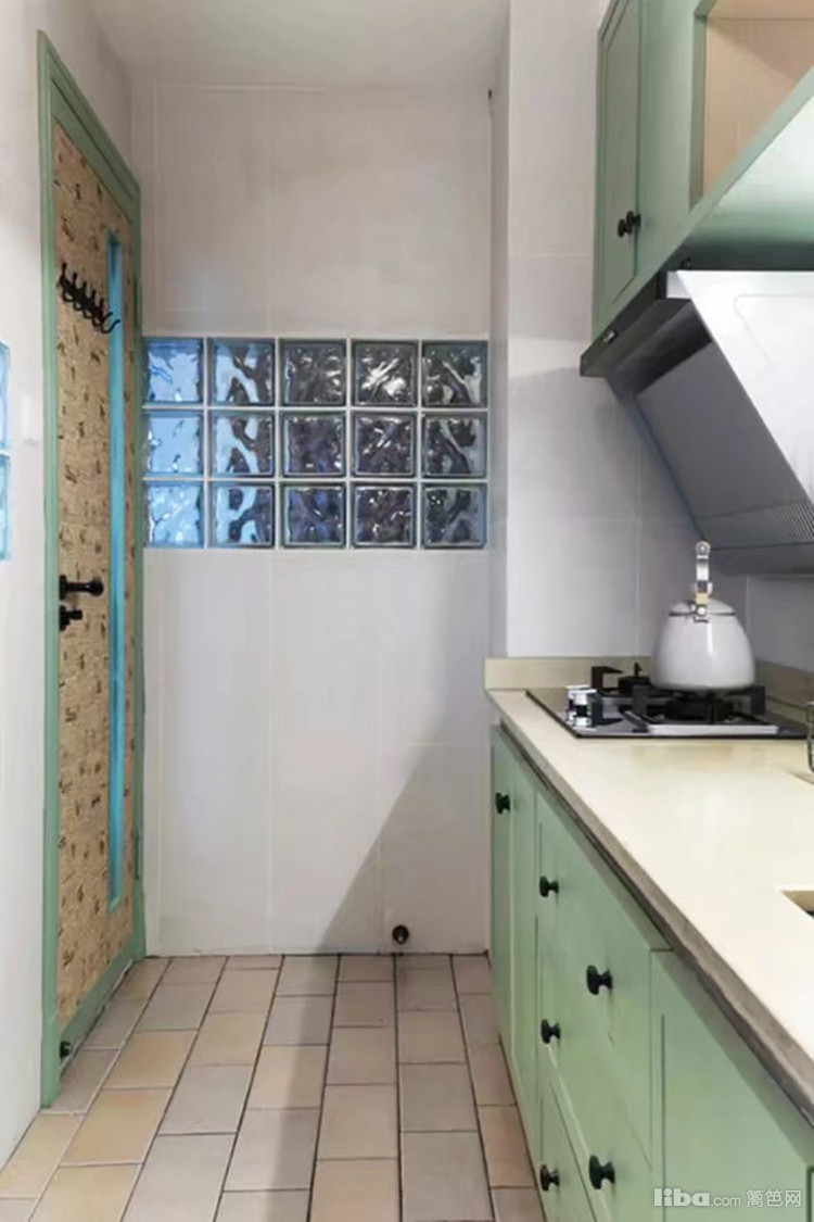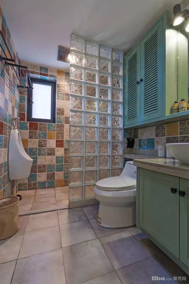 亮眼的怀旧花砖,清爽晶莹的玻璃砖,两者营造出一种朦胧美,实用和美感兼备