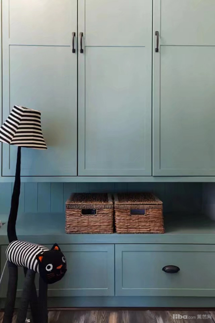 整个柜体一起呵成,展现出强大的储物功能,让整个空间十分整洁清新