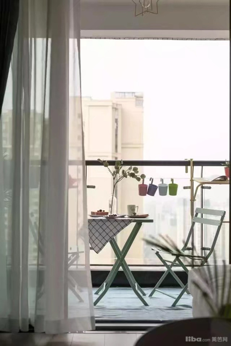 客厅外的阳台没有封起来,留出来了一块养花的空间,也是休闲区
