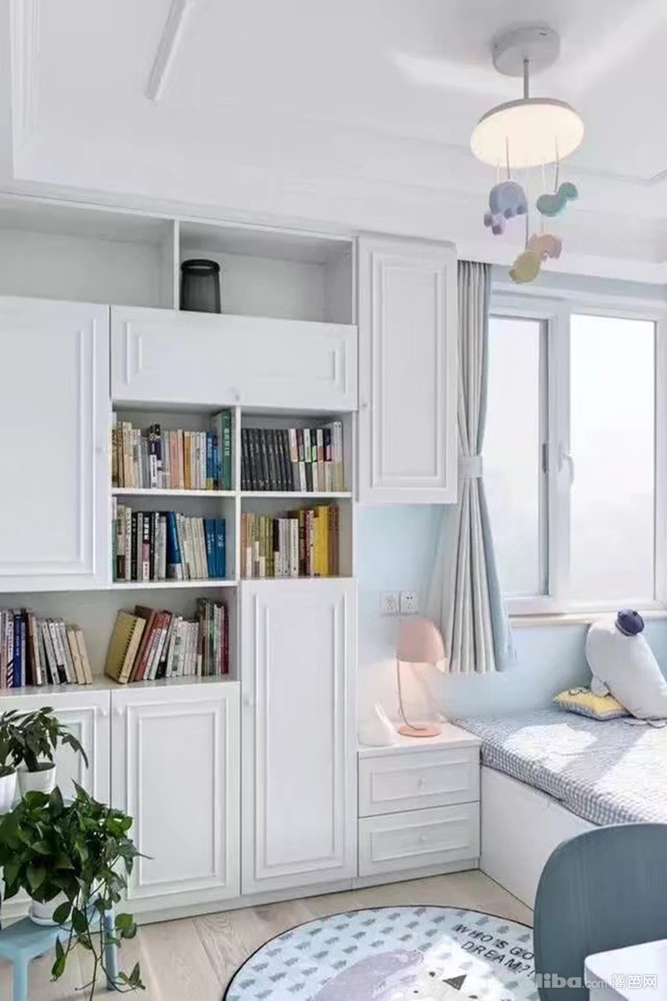 儿童房随意组合装的书柜,卡通小熊的地毯,可爱的小座椅,充满童趣