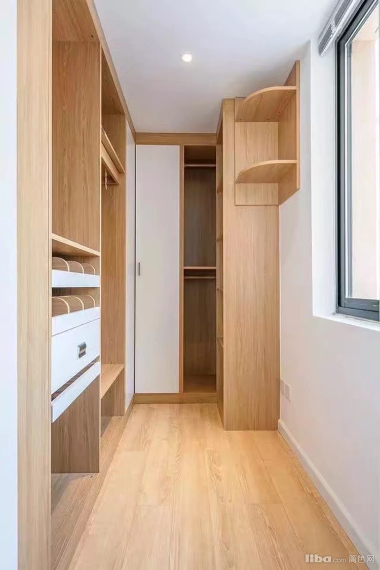 主卧里独立的衣帽间,整个空间不大不小,在木质感的包围下,充满了温馨自然的氛围感