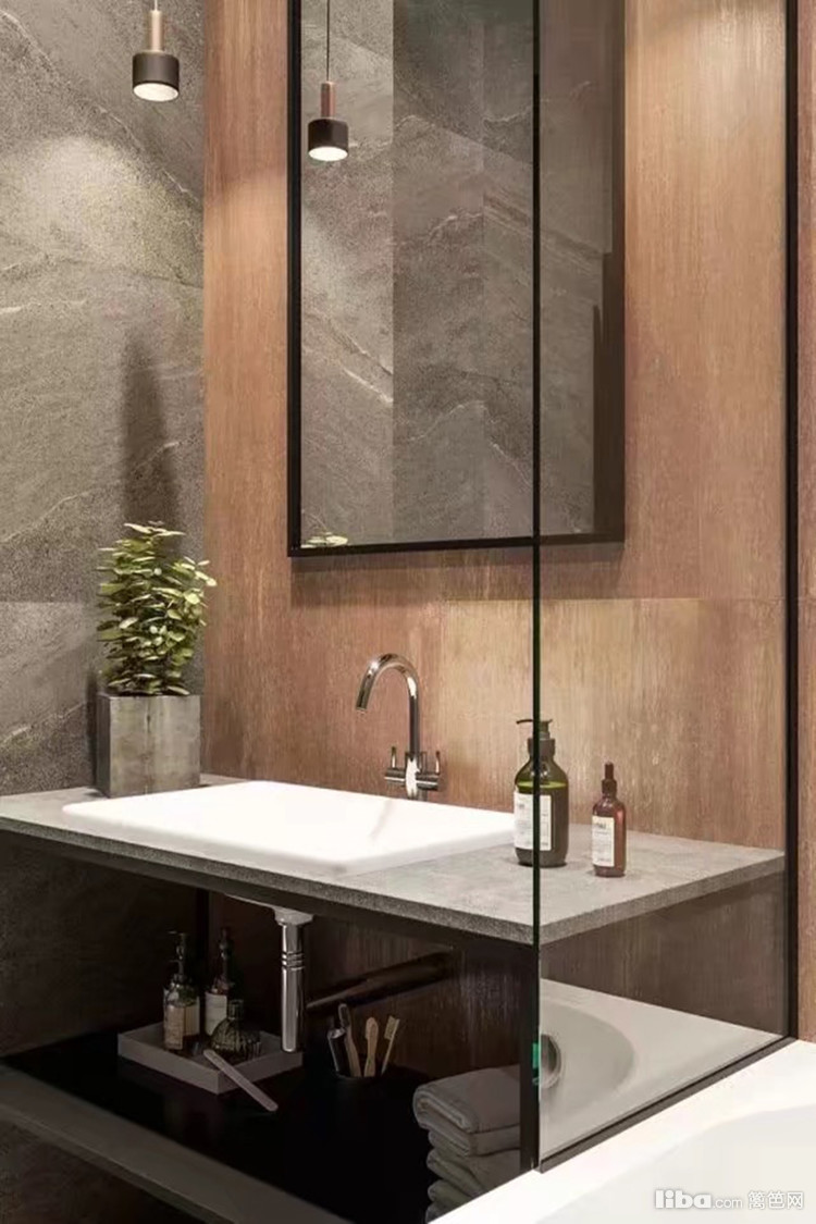 浴室看起来有点不一样,采用了更多的大理石和木头,让室内质感更加丰富