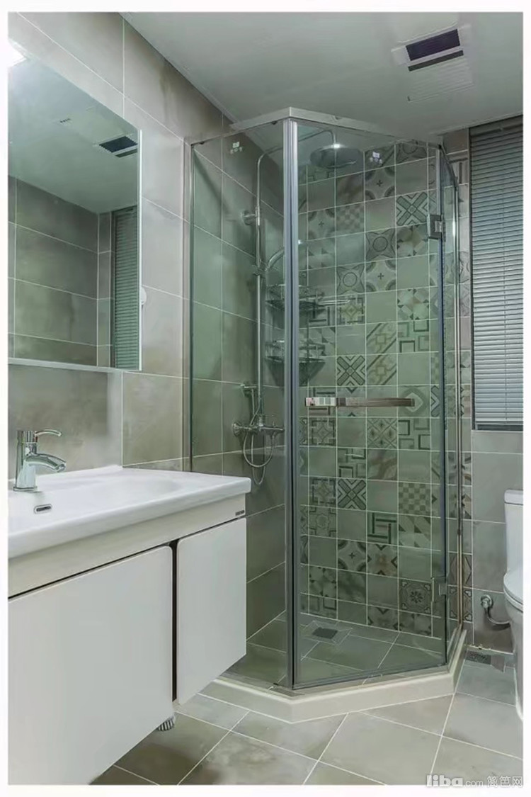 卫生间做了干湿分离的设计,淋浴房做在了拐角处,更节约空间,淋浴房内部的花砖背景墙,让卫生间更有趣味性