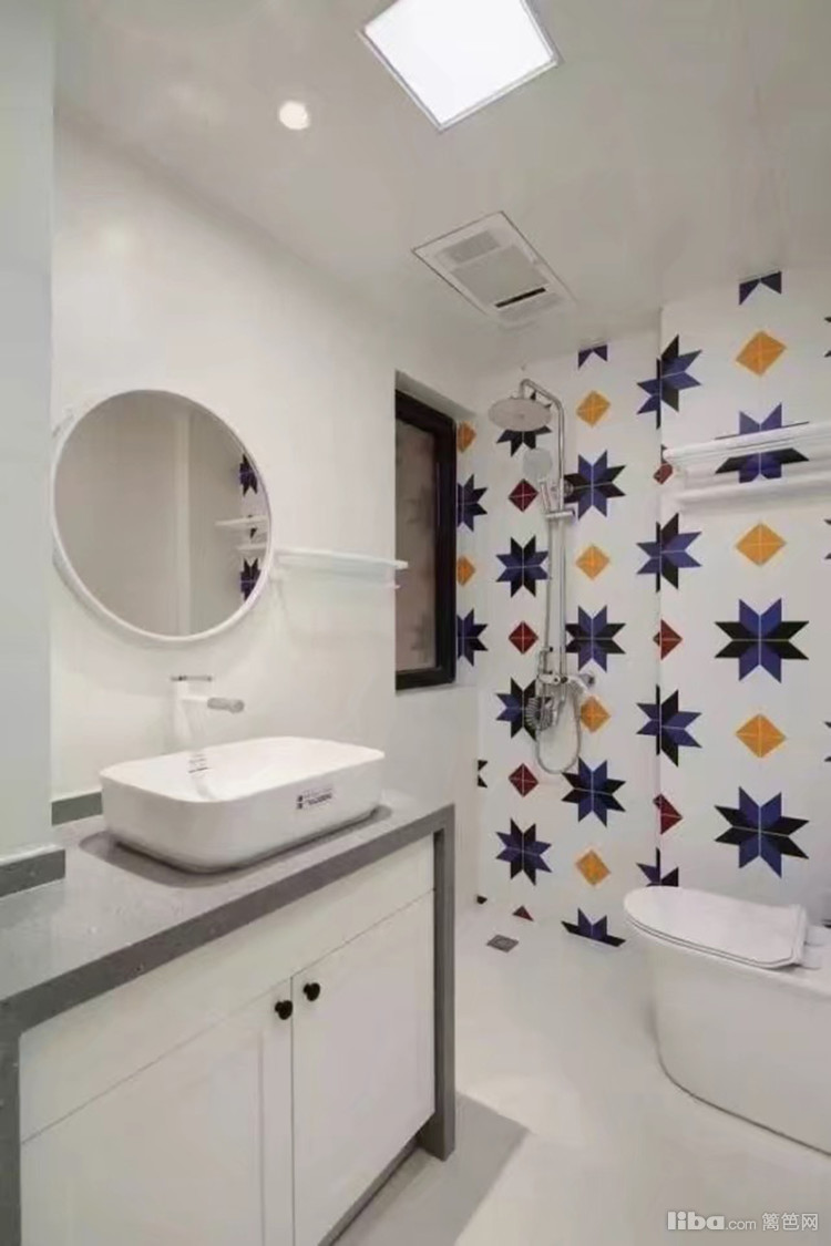 卫生间以纯净的白和淡淡的灰,简约大方,背景墙给空间带来动感与已经