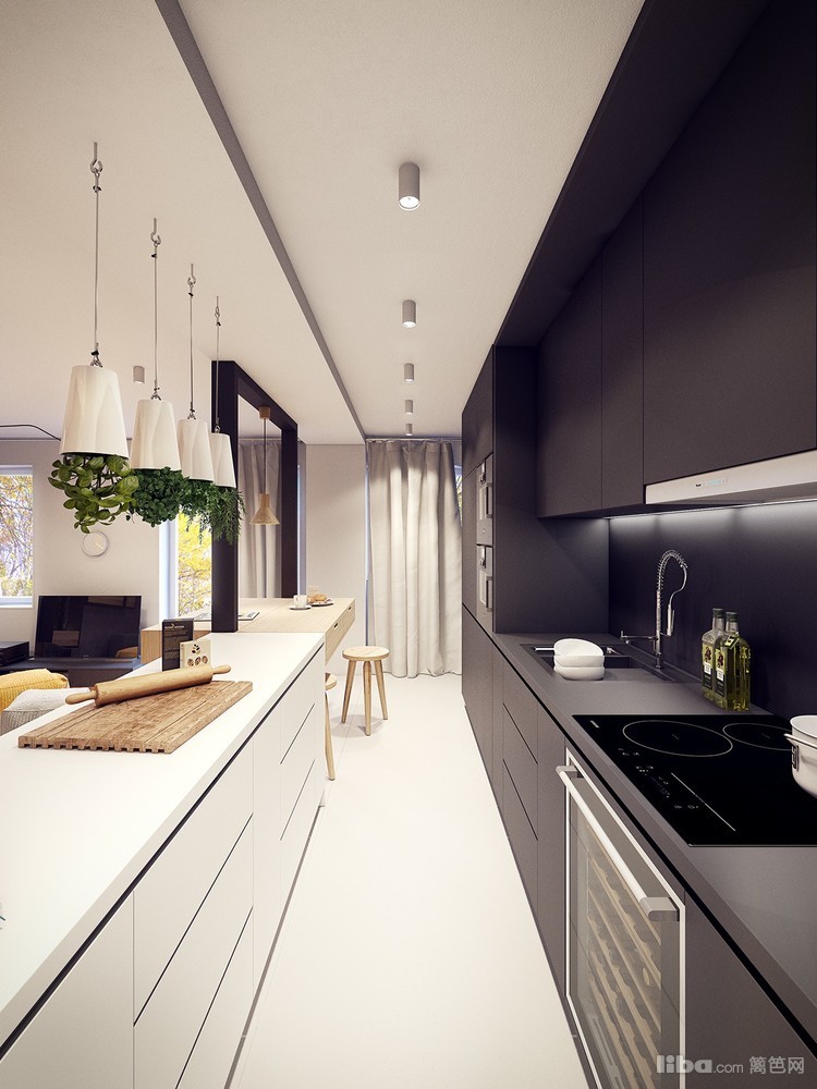 看的出来,业主是非常喜欢做烹饪的,尤其喜欢做面食吧?顶上垂下来的4个绿植造型装饰,真的把春天请进了厨房