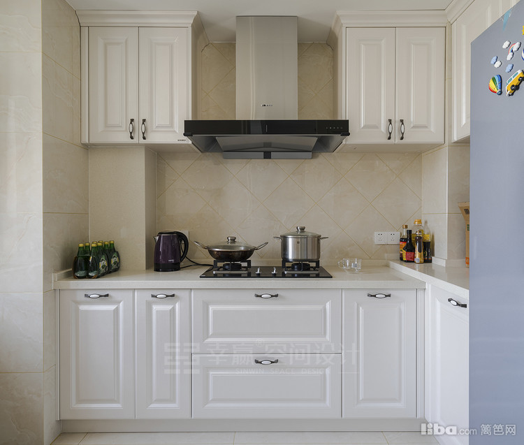 厨房的设计简单、随意,看起来干净利索、宽敞明亮,白色与米色的搭配和谐,给人一种清新靓丽的感觉。