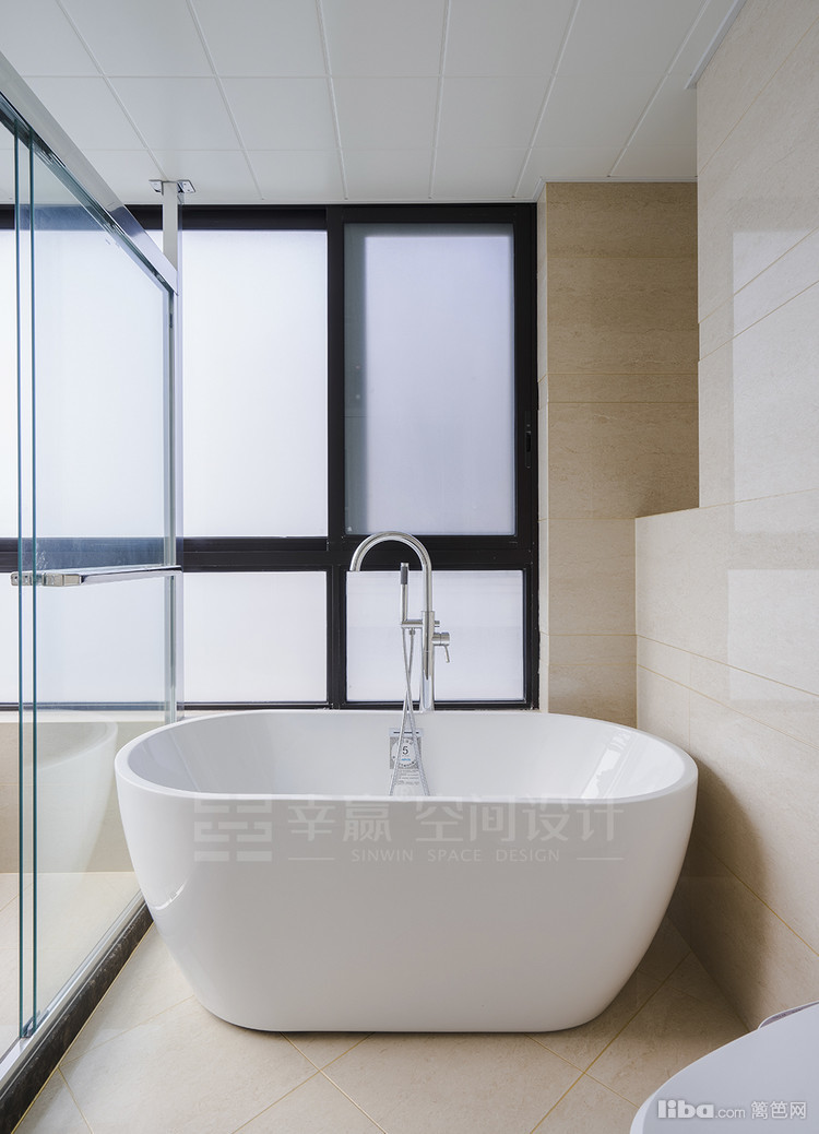 干湿分离的布局,合理、简约。干湿区的空间更为宽敞,同时可以阻隔水汽,保持淋浴区以外的空间干燥,壁柜的设计更贴近人性化的需求。