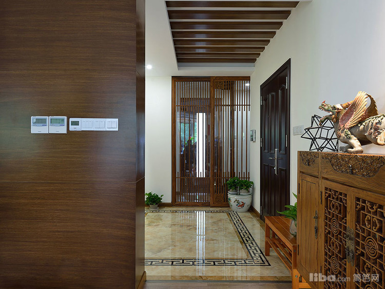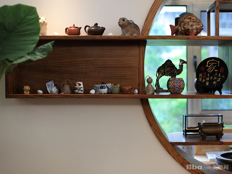 与客厅一墙之隔的便是业主家的一个佛堂,坐在佛堂里既可以观赏到窗外的景色也能看到客厅里的一切。