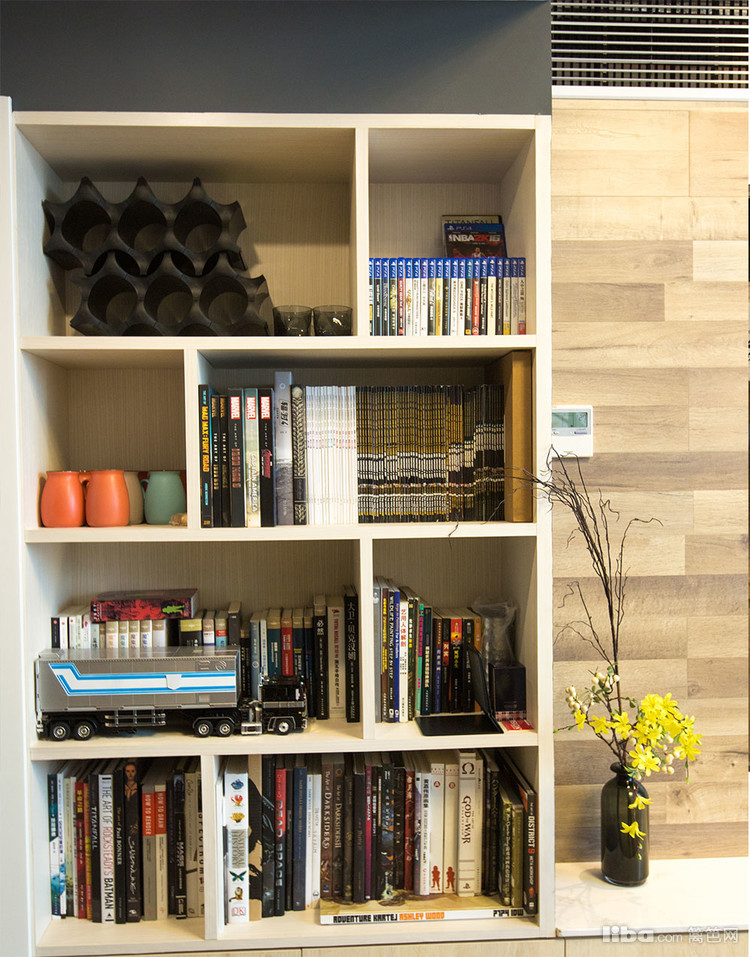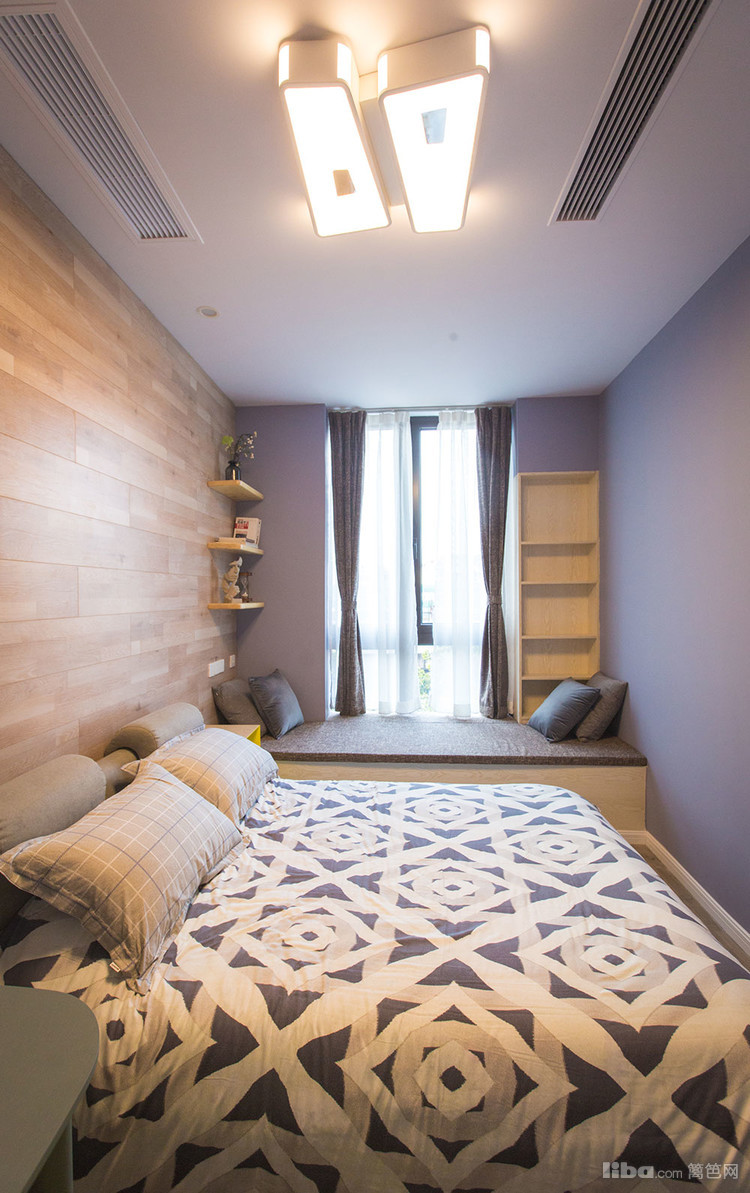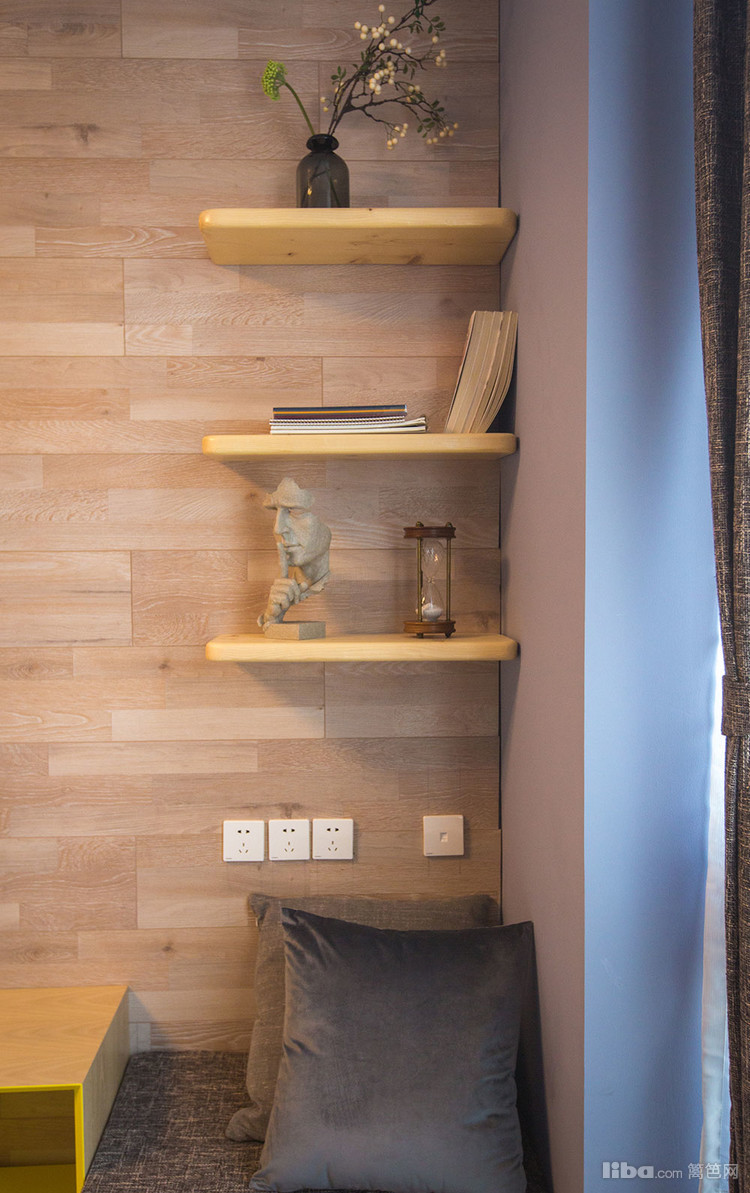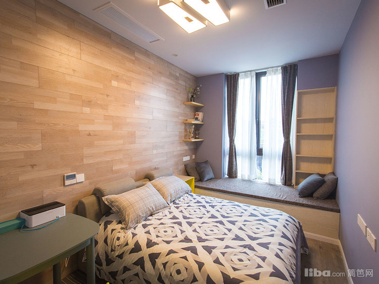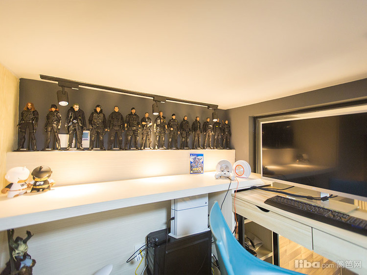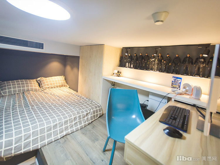 房间,当然要和外面一个感觉咯,利用房间的暗角设计了一个藏宝贝的大空间,个性的床头柜正在偷偷看着你呢!别看了, 外面可都是她的小伙伴!