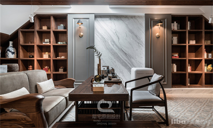 主人日常好阅读、品茶,将阁楼改造成茶室、书房,独特的空间结构自然形成一个静谧雅致的独立空间,让主人在繁忙的工作之余得享清闲。