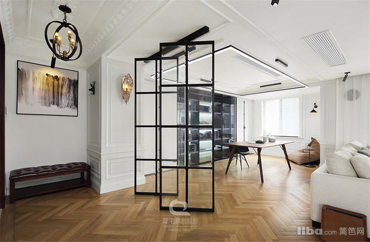 原始房型大白天进门后就要开灯,将小卫生间和卧室拆除后,装上旋转玻璃移门,以作装饰和隔断之用,采光明显改善。