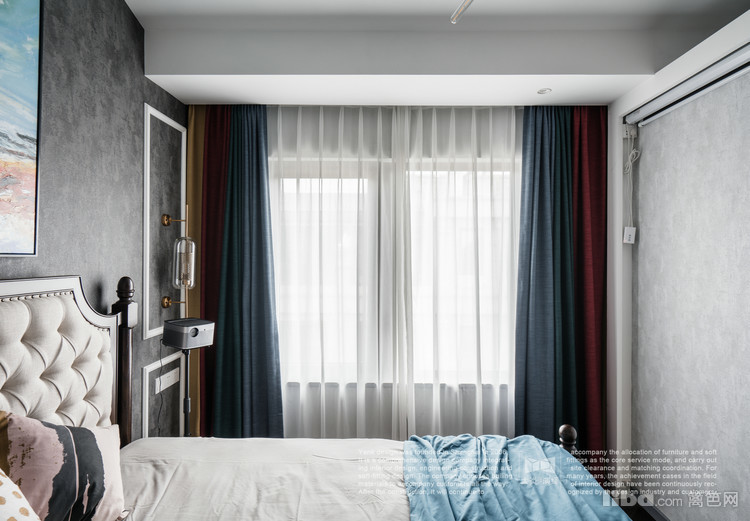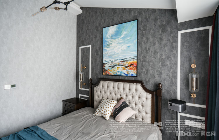 业主的卧室以灰色为主,墙面采用不同纹理和深度的壁纸装饰;