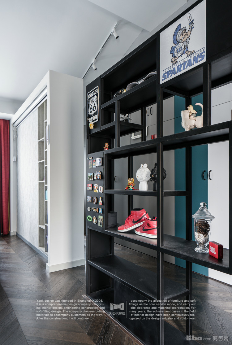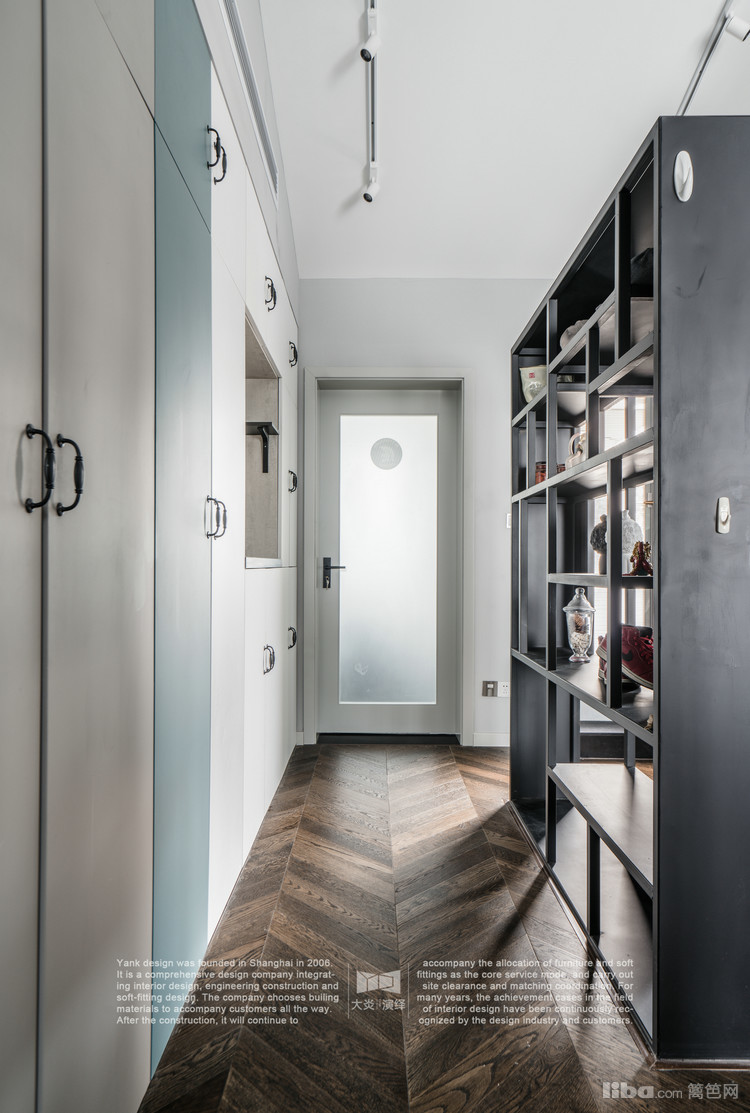 设计师充分利用了过道的空间,两边分别设计了整面的储物柜和展示柜;