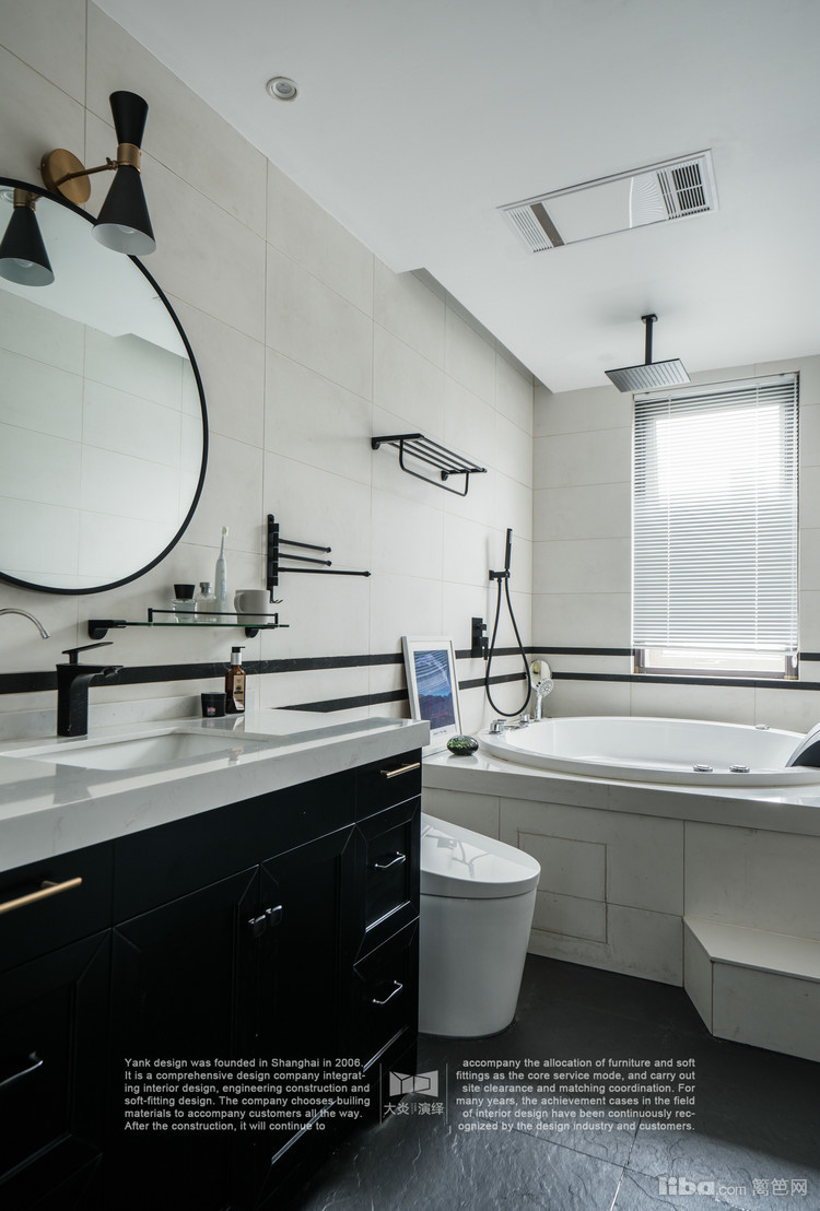 卫生间以黑色为主题,让人眼前一亮的就是圆形的浴缸了,可见业主是多么懂得享受生活哦~