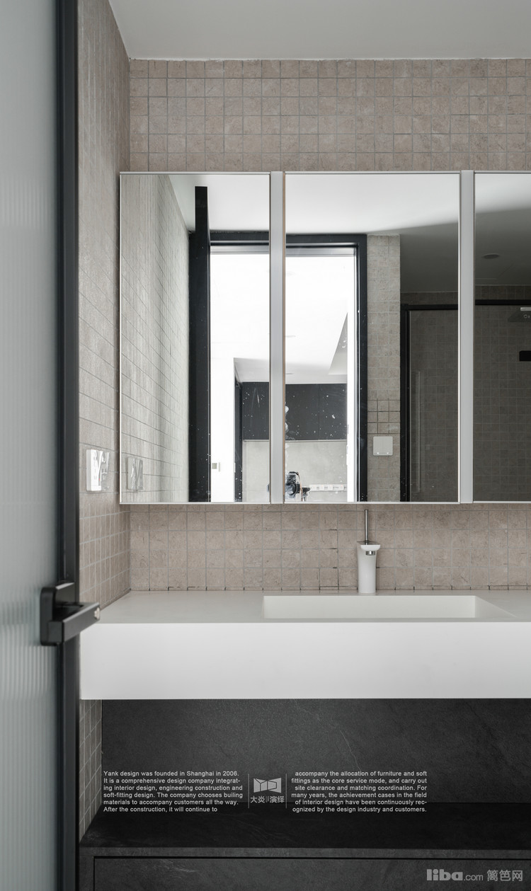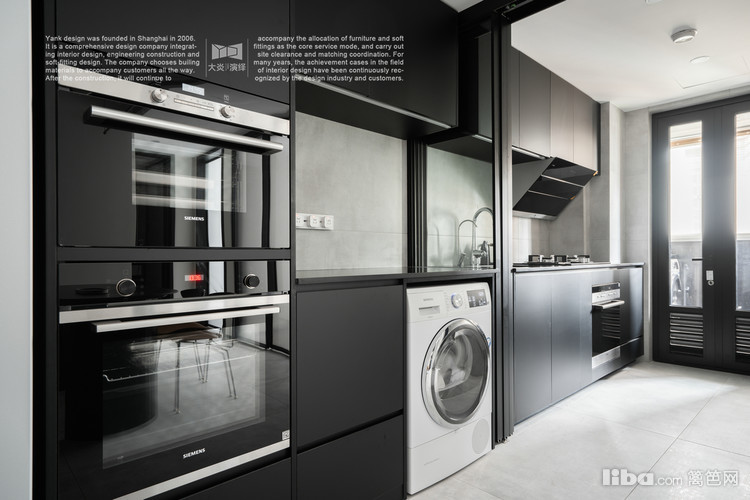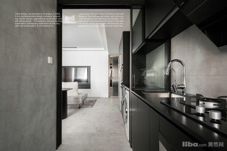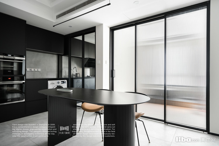 柜体色彩选择黑色,更具高级感,台面设计时舍弃挡水且不做台面下挂,视觉感更加轻薄,符合极简的设计理念。