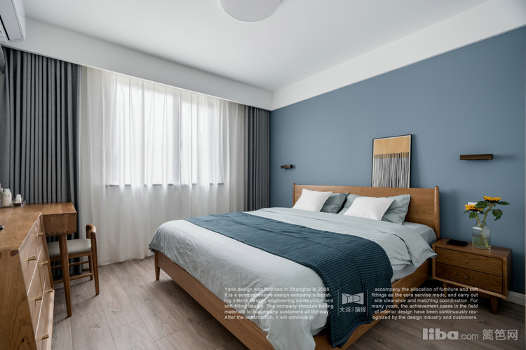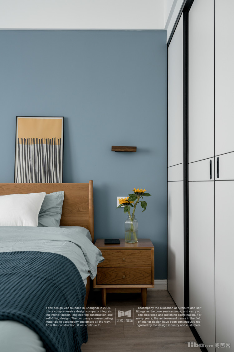 雾霾蓝墙色特有的沉静,给以休息为主的卧室带来更舒服的视觉效果。
