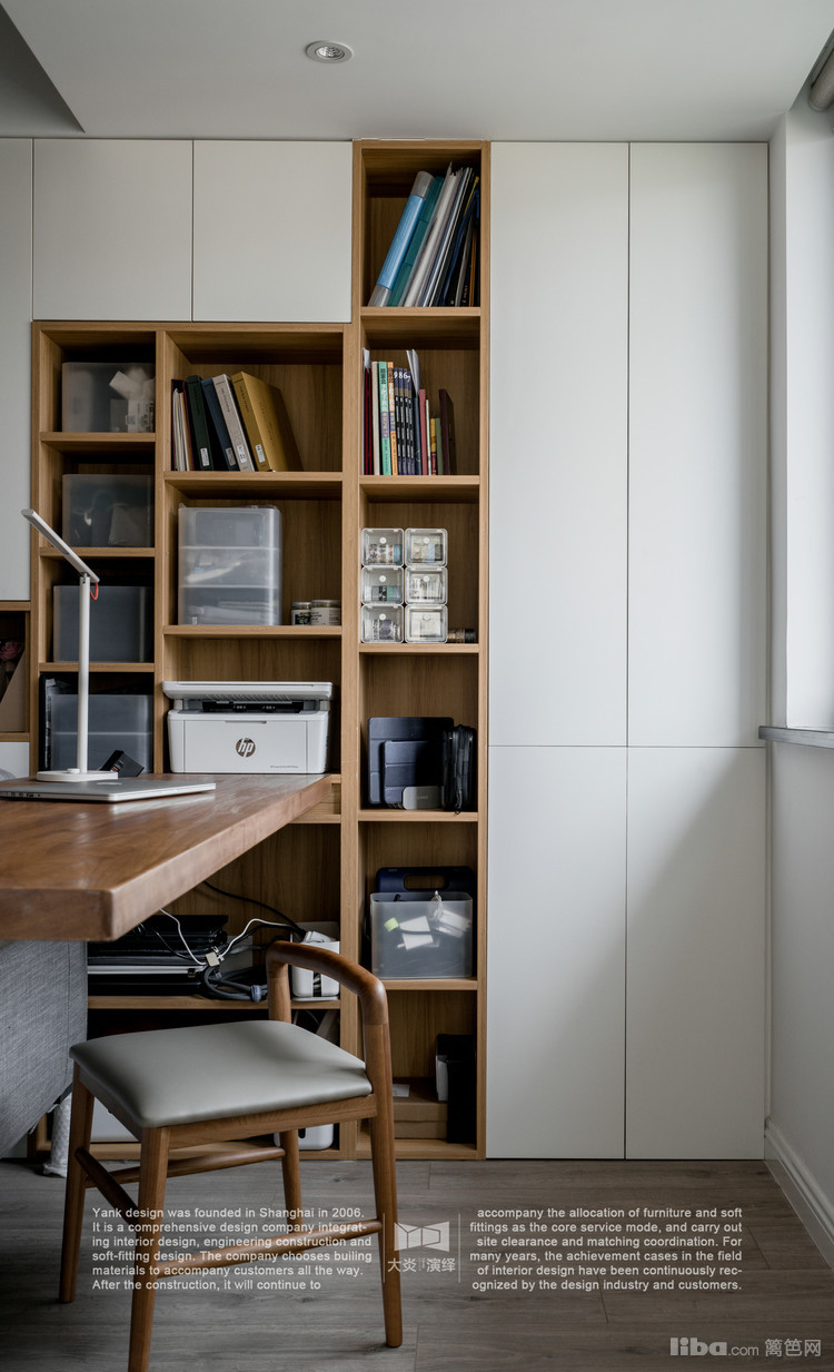 ③ 靠墙区域增加储物.并利用阳台空间增加做了办公区;