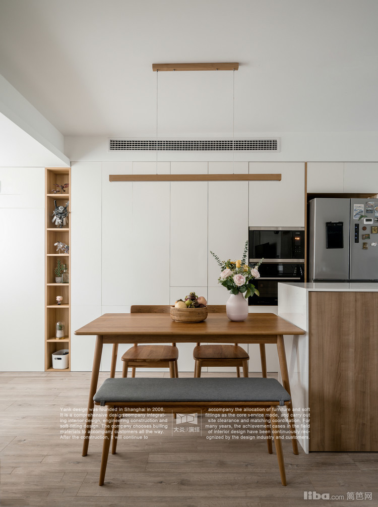 原户型这里是客厅,因厨房到餐厅用餐还要绕过,所以设计师把这里设计成用餐区,使动线更流畅,