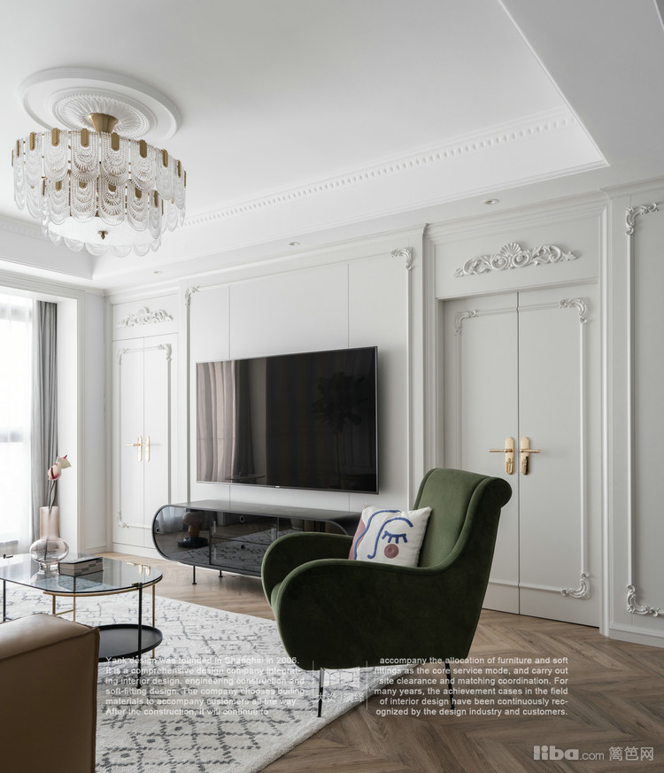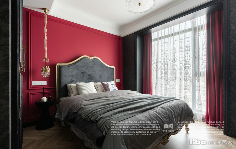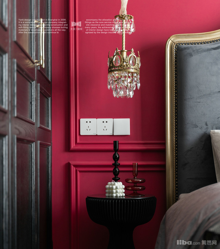 选择法式红搭配石膏线条做背景墙,在精心挑选的水晶吊灯的点缀下,