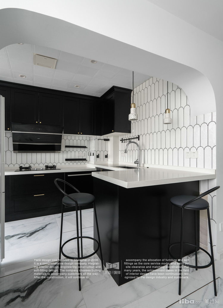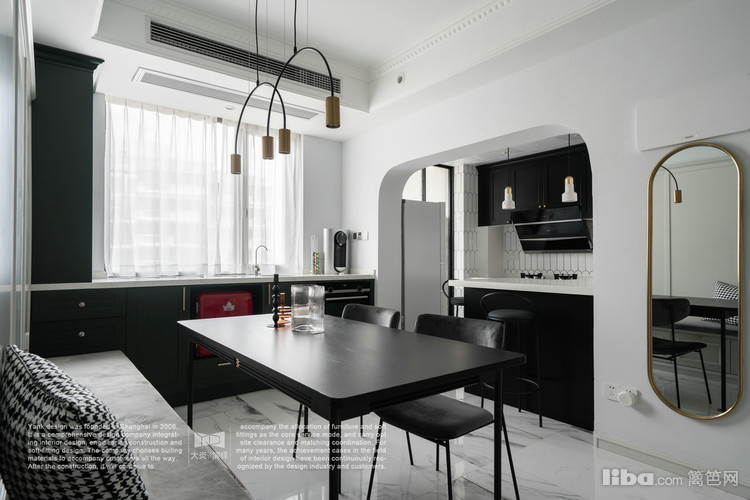 黑白配法式复古中西厨,餐厨一体!原户型厨房的门很狭窄,结合客户的生活需求,把厨房和餐厅做了一个融合,