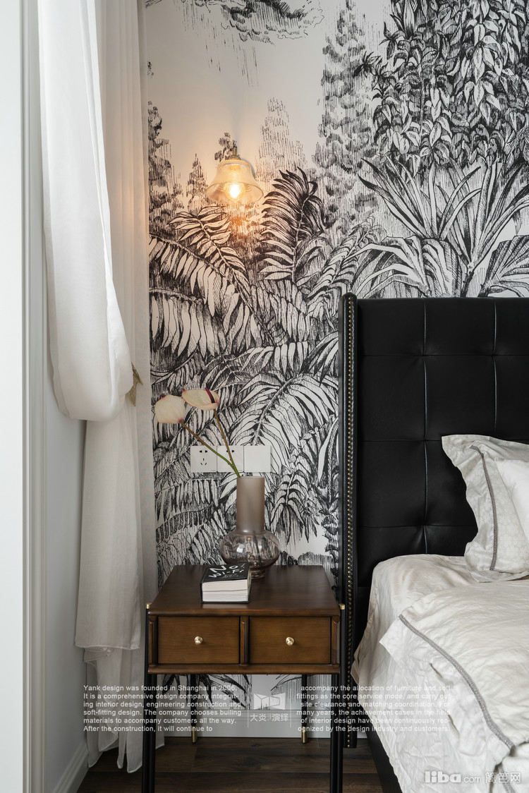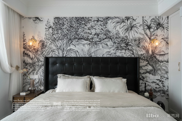 主卧套房 / 以黑白为基调;融入了类似于复古风的一些壁灯,包括窗帘的窗帘扣,