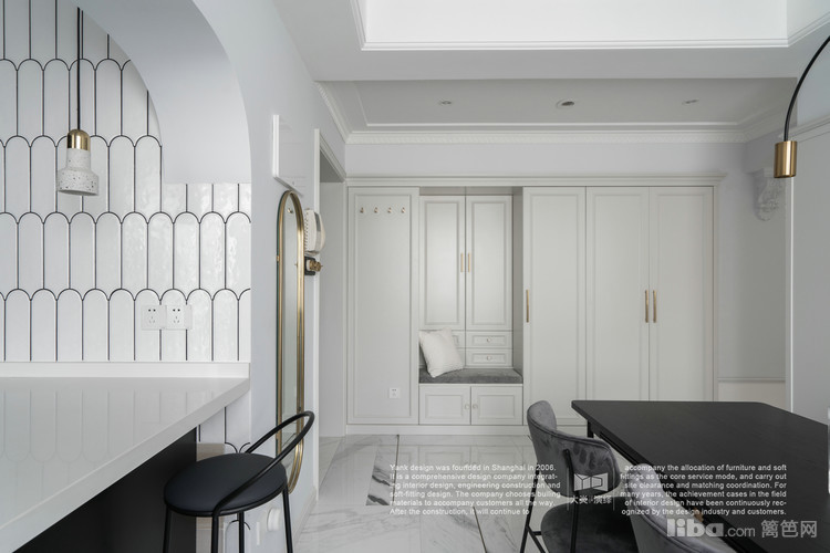 入户门厅设计了一排柜体,卡座的设计为了方便换鞋,