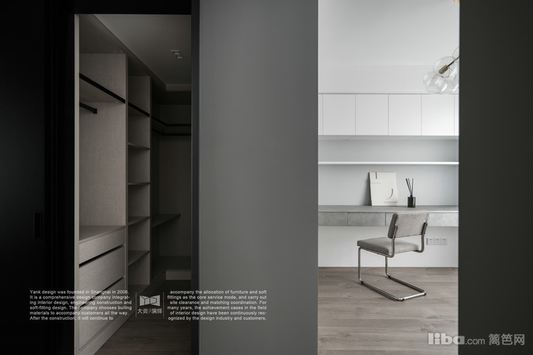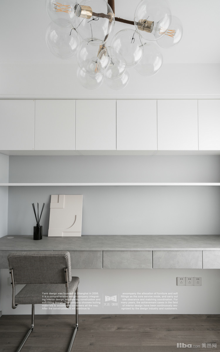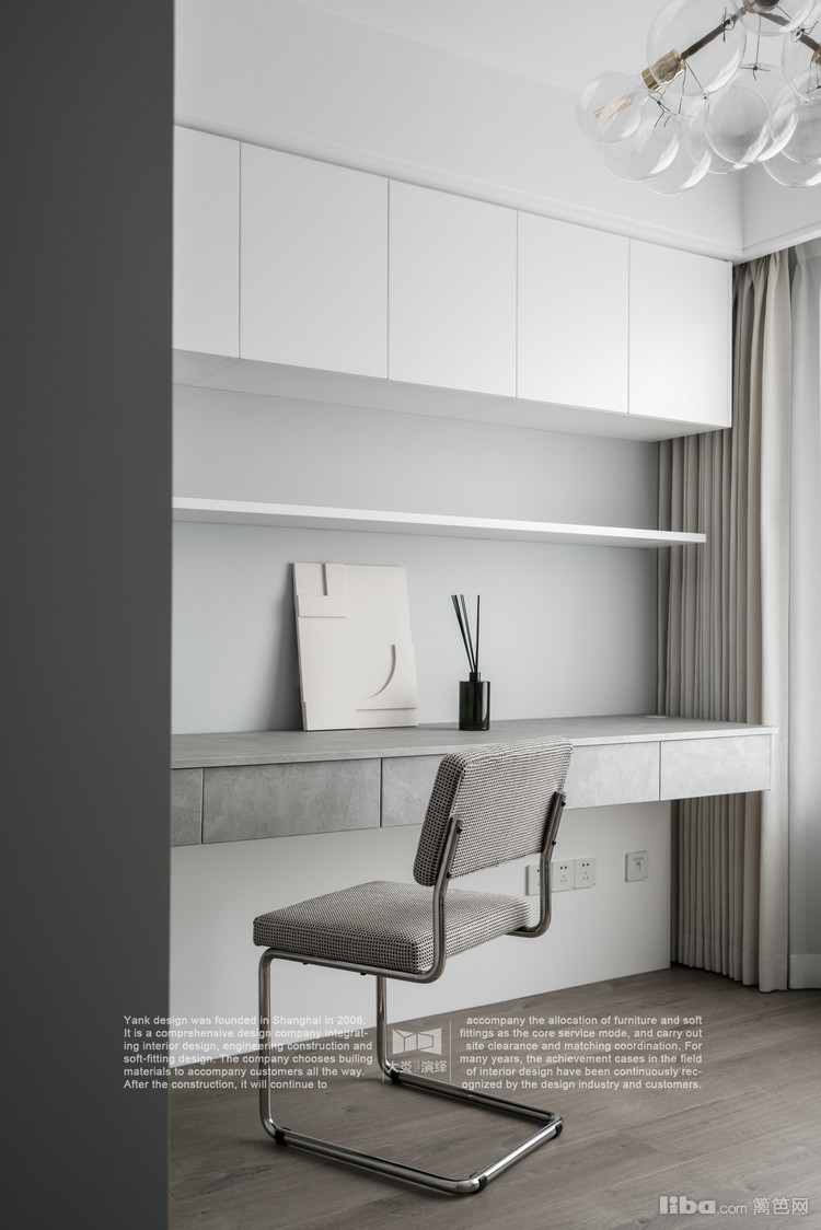 书房主要是兼顾女主人在家办公的一个需要,以及小朋友活动空间,练琴区域等,利用过道墙体的空间,增加了主卧的一个衣帽间~