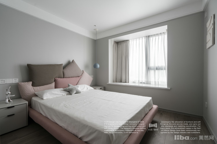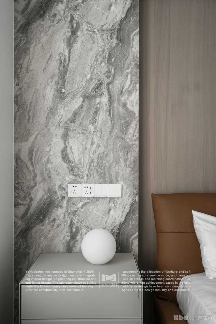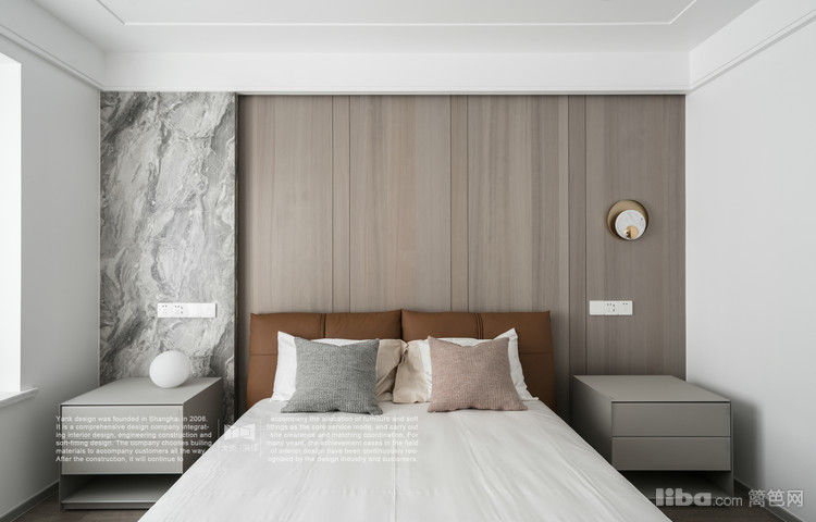 整个主卧色调以温馨为主,用了客厅同样的木饰面,