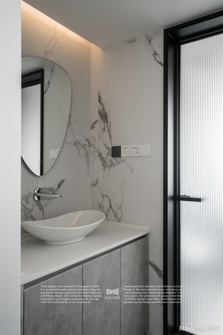 在原本不大的空间里面,借用了一点主卧的空间,设计了浴缸淋浴马桶和台盆!