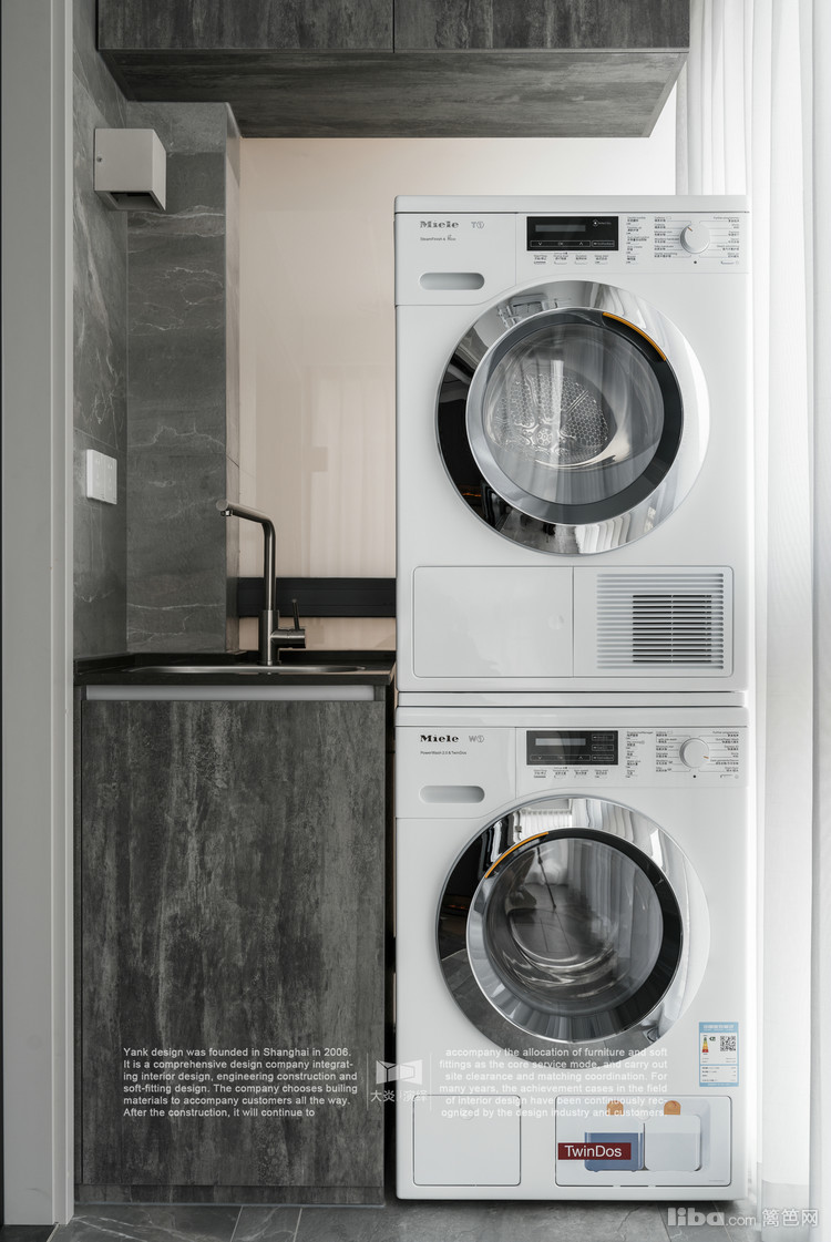 阳台空间考虑到日常生活的一些功能,在原本朝东位置设计了水槽和洗衣机烘干机!