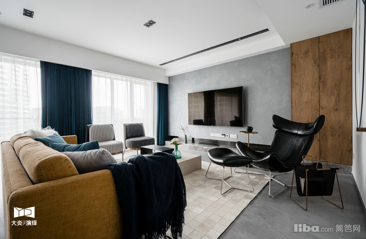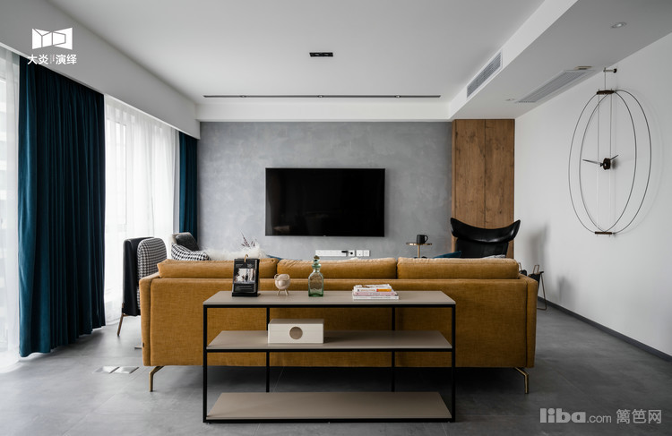 开放式的阅读区,背后是电视背景墙一侧的木色书柜,缓解整面水泥墙带来的视觉疲劳~