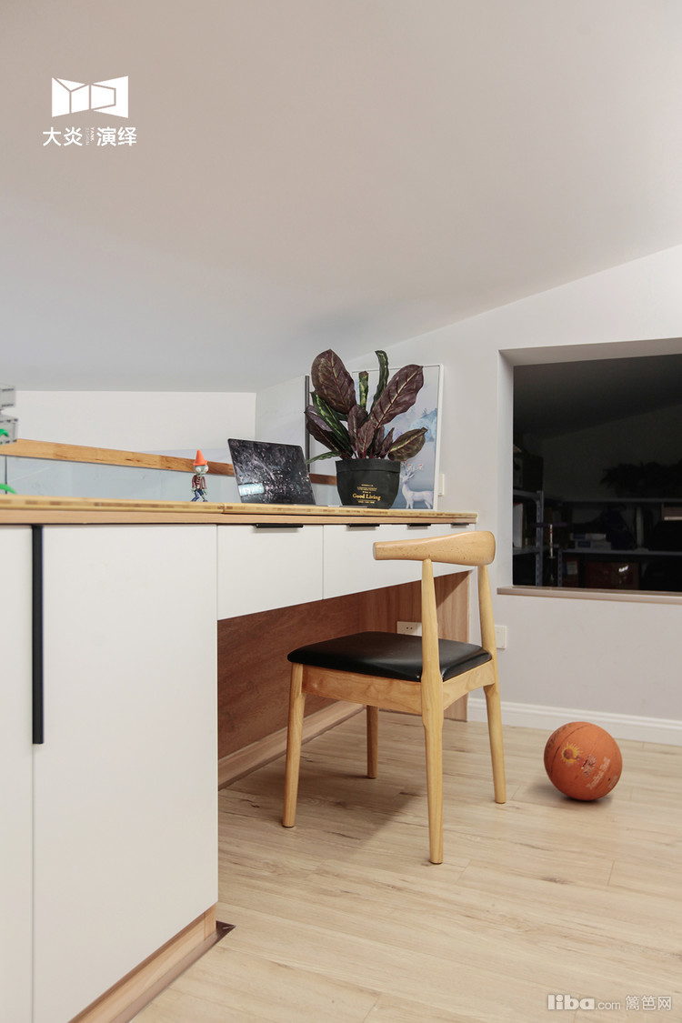 简洁纯白系且宽敞的空间,正上方就是阁楼的储藏室,把原先就一扇窗户的,做了延长伸向二楼,让储藏间也多了些许光源!