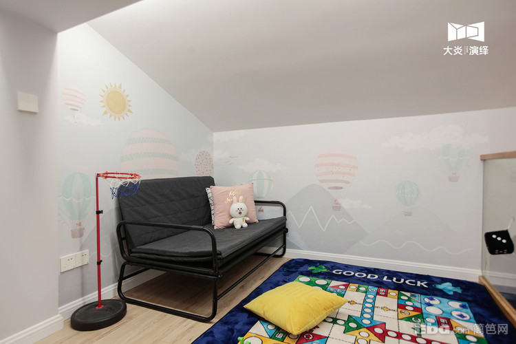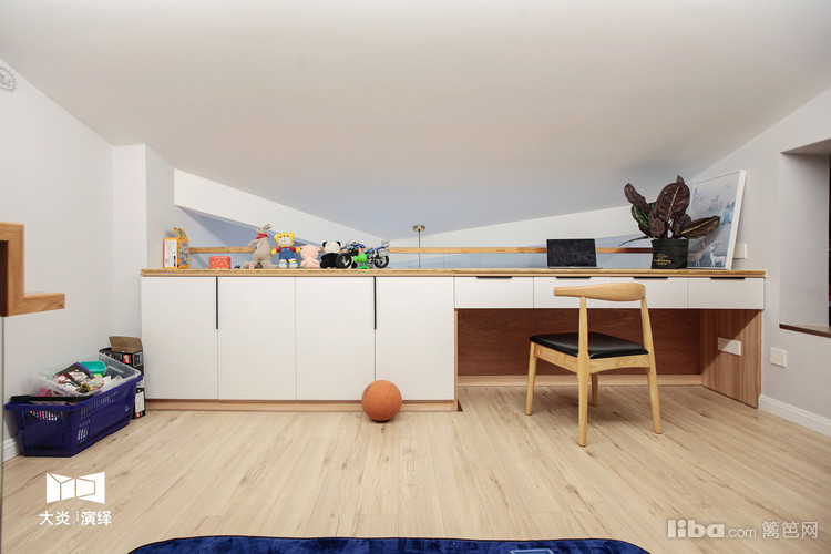 该区域主要是儿童娱乐活动区,长长的储物柜收纳了小朋友积攒多年的玩具,桌面也可做大人的办公区;