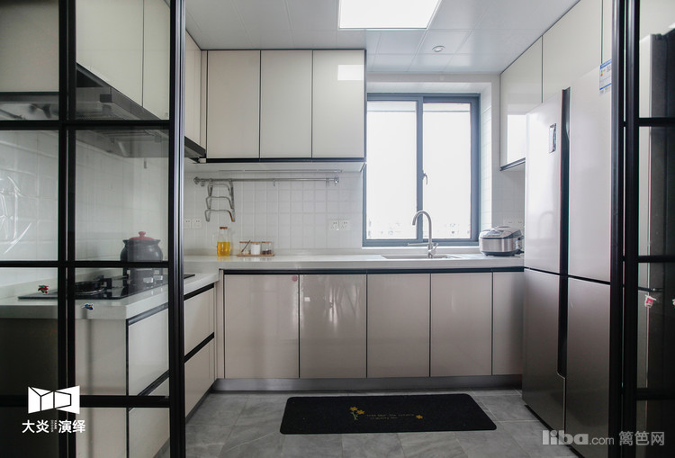 宽敞的U型厨房,日常打开移门便是开放式的,使用时关上移门便不存在油烟的困扰了;