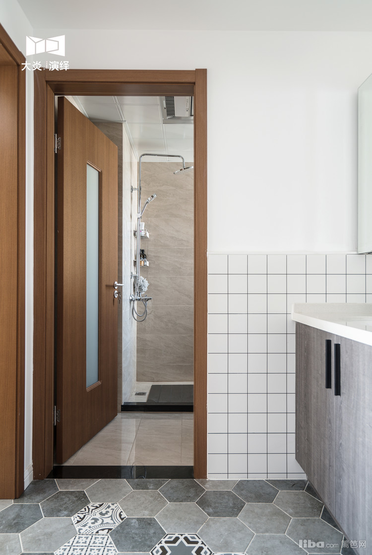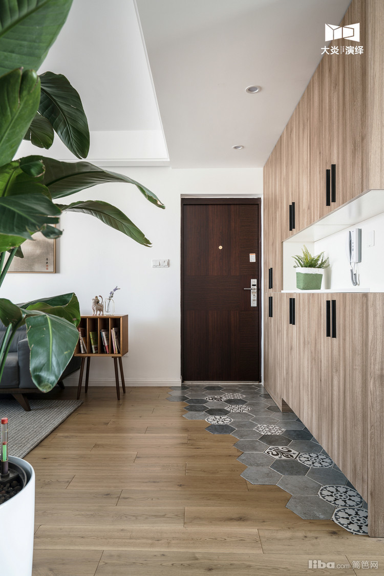 六边形砖与木地板的拼接时尚美观,这个整洁的空间离不开柜体的功劳,门厅的储物柜体相当给力!