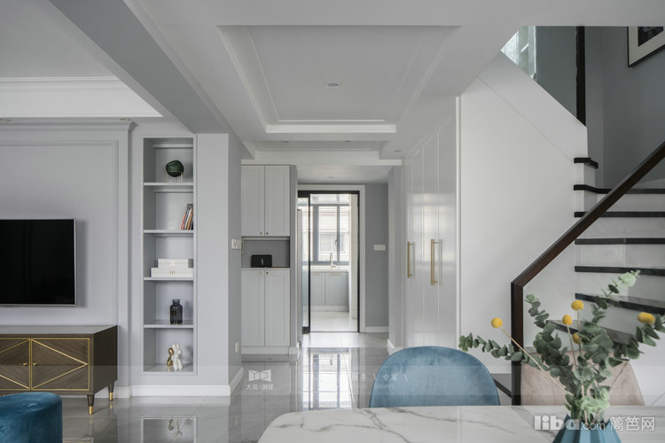 装饰上以简约感做基础,采用无色彩系的中性色来营造素雅氛围; ps 楼梯改变方向后的大大储物间