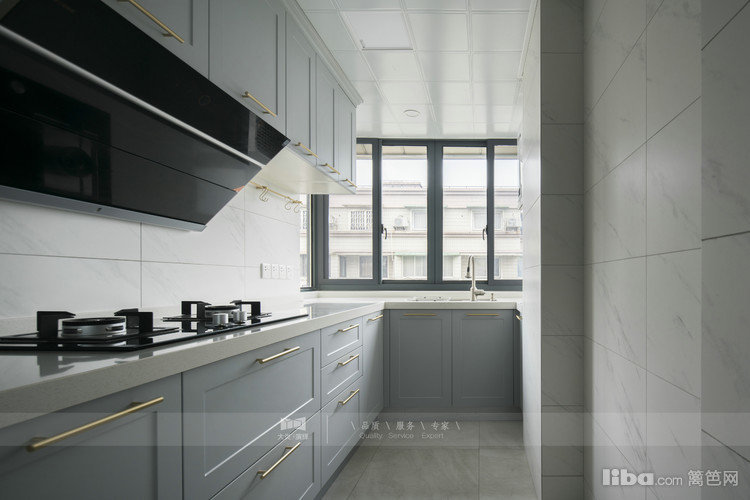 因楼梯方向改变,为使整体空间更开阔,把原厨房冰箱位置放置在外面,缩短厨房的深度,