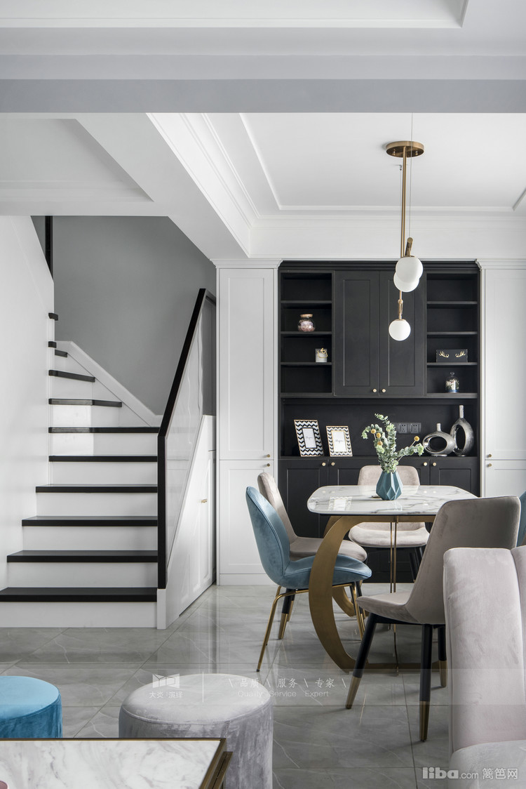 设计师在预算范围内,硬装上通过改造楼梯方向,进而使整屋更加通透,空间利用率大大提升;