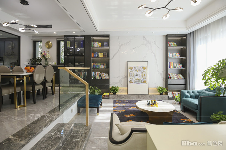 满足业主对家的所有想象。 客厅真正拥有的空间并不大,所以在家居的配置上花了不少心思,收纳柜也是都全部都做了书架,给孩子和家人营造一个浓厚的学习环境。