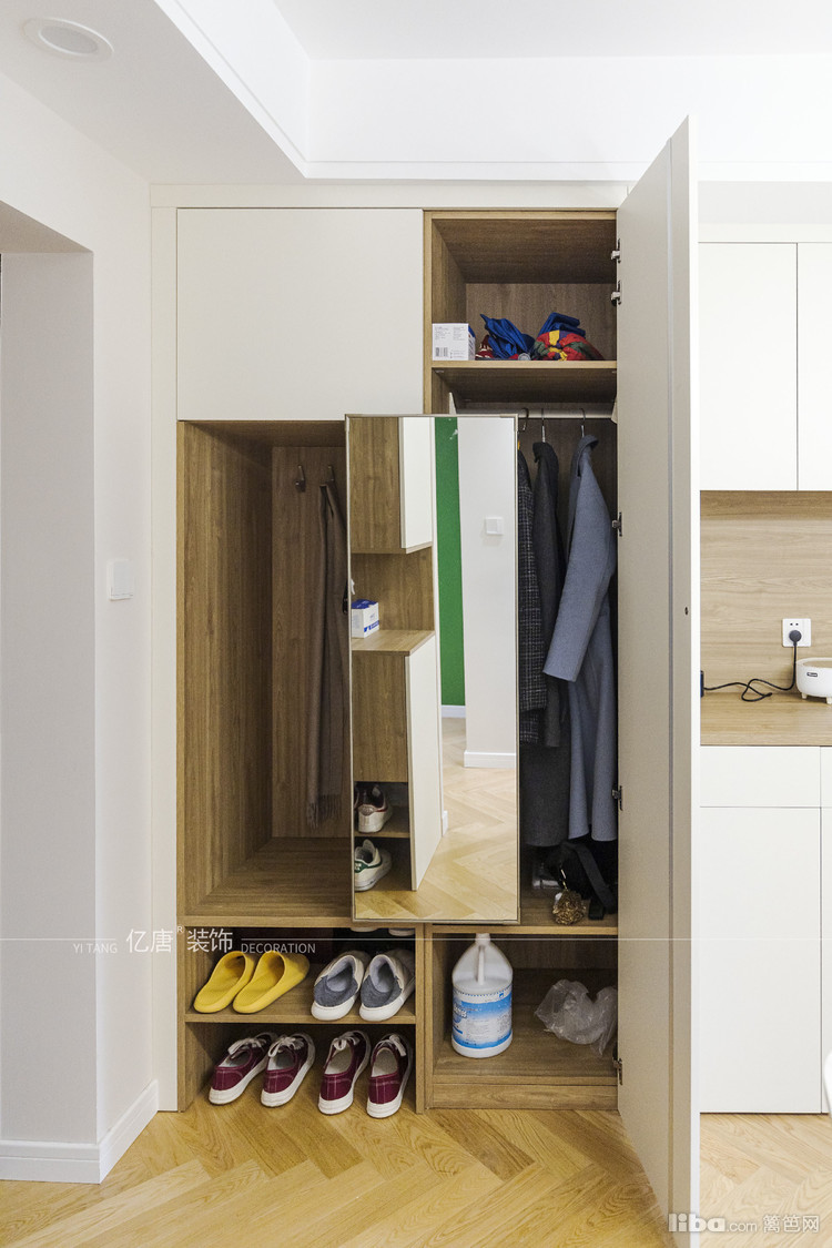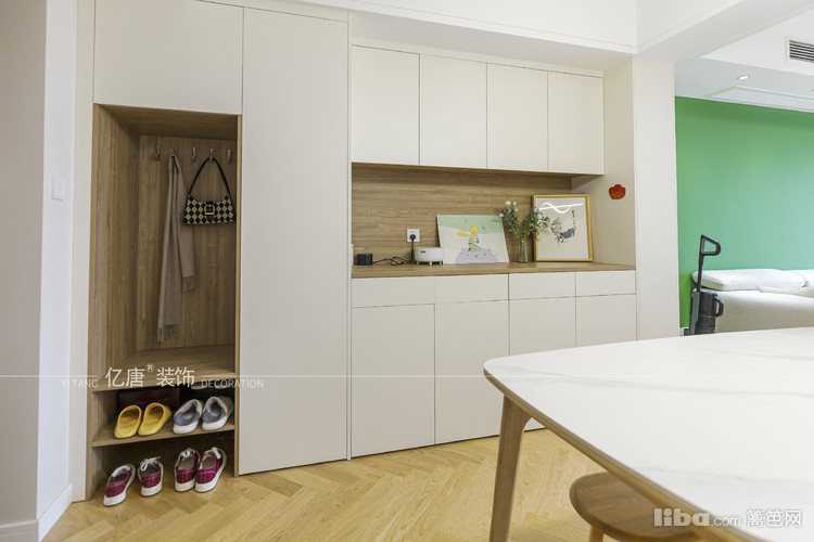 入户通过柜体做玄关 ,多功能的收纳柜,也可以做餐边柜