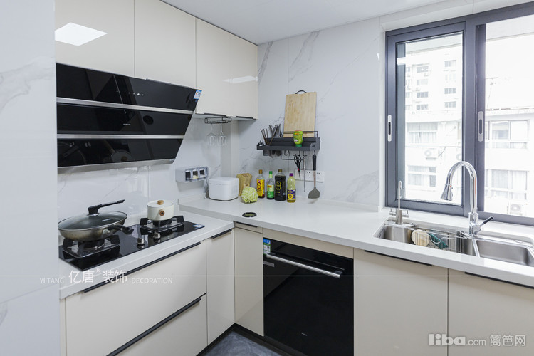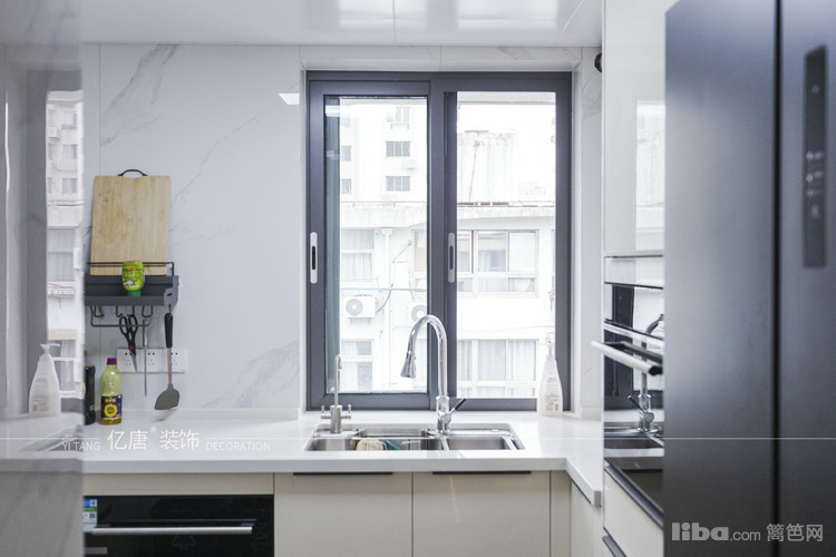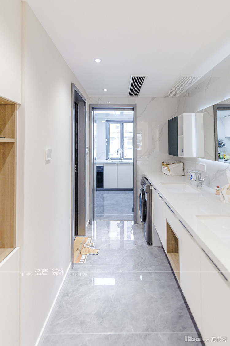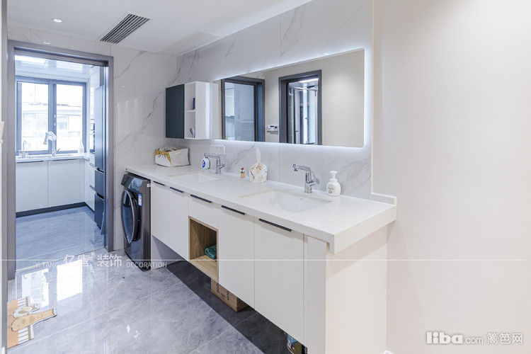 原本是厨房过道做双台盆,大镜柜美观使用也比较能吸引人视线