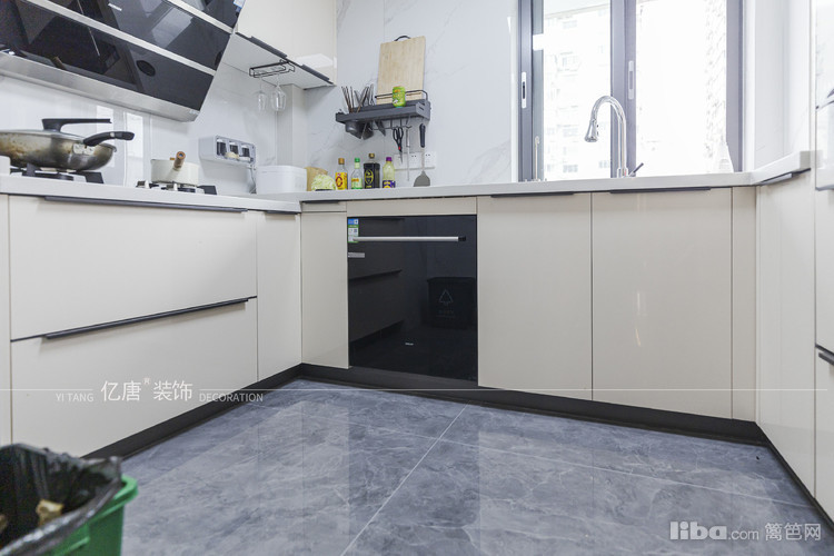厨房这里用700*1500mm的大砖铺贴,整体性很好,特意作了高低台