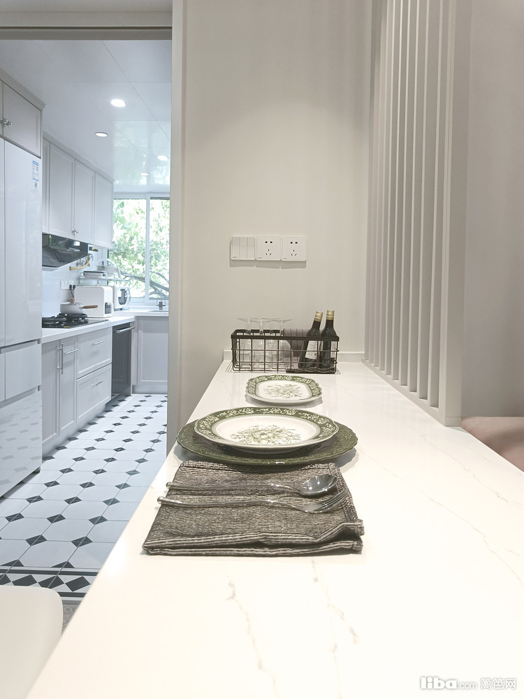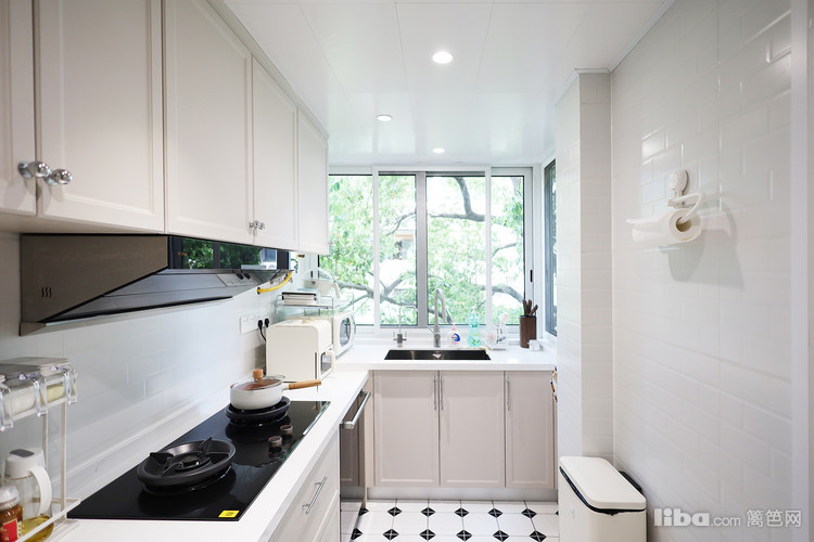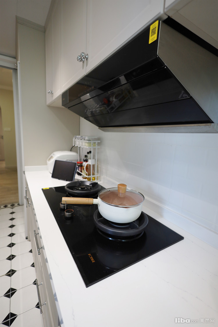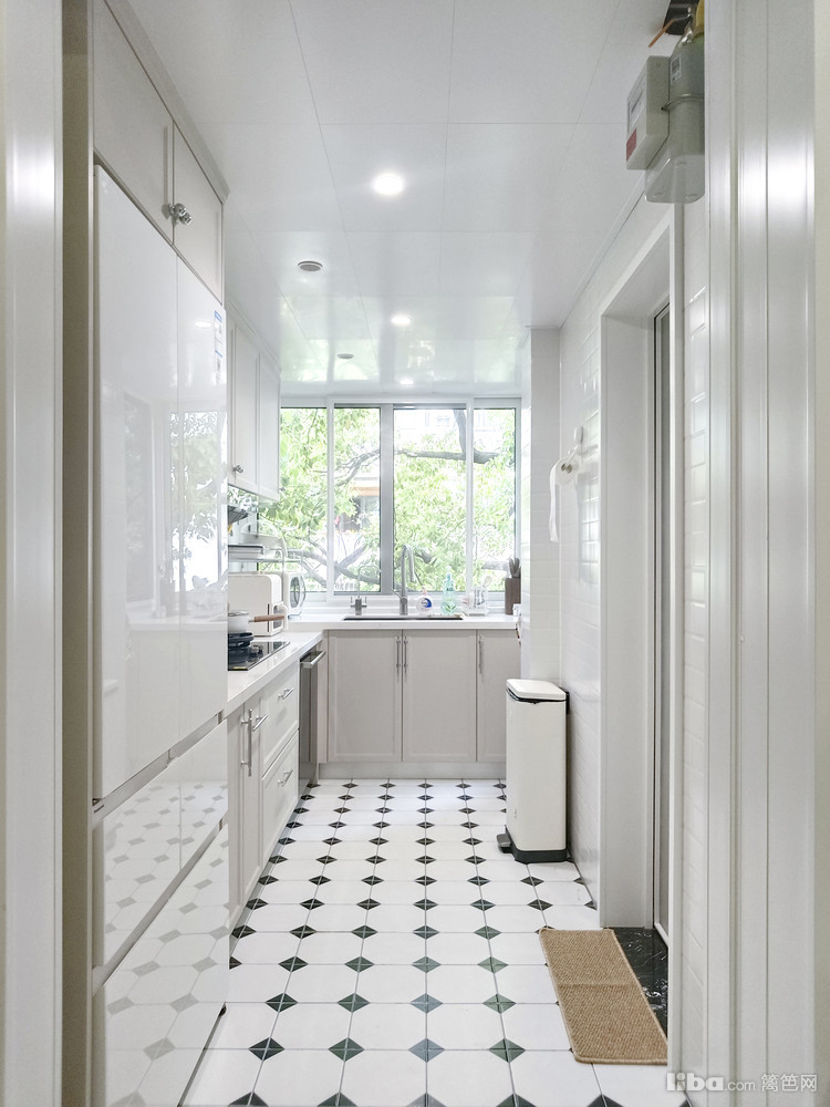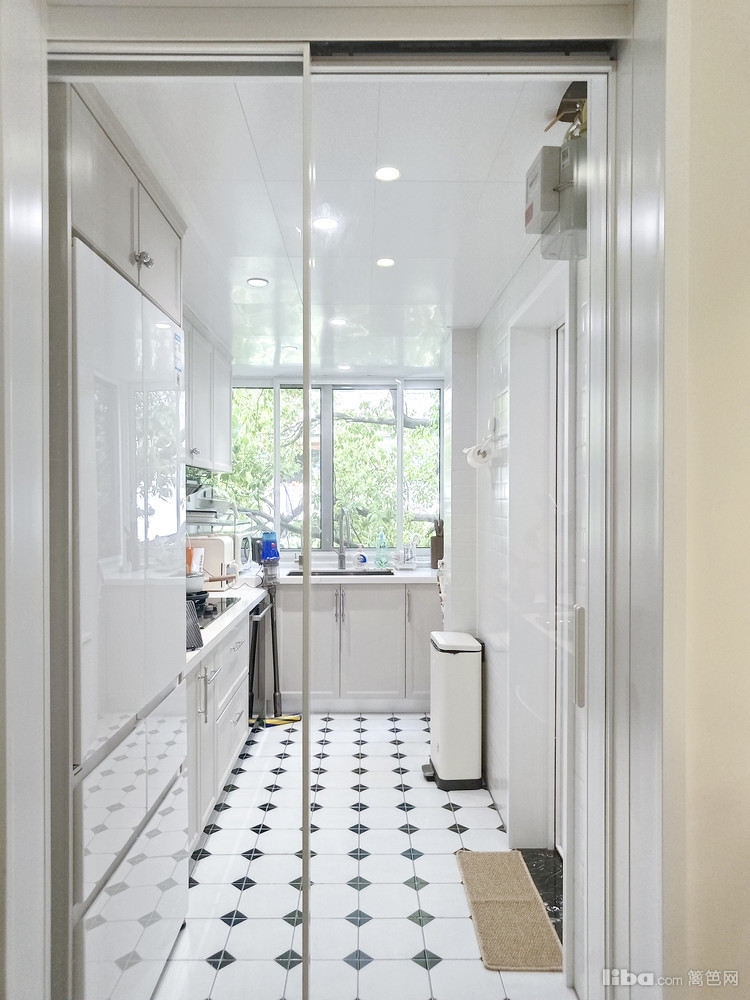 厨房极窄边框联动隐形一门,搭配复古小花砖,整体奶fufu的厨房,温馨又浪漫,业主也喜欢上自己烧饭。