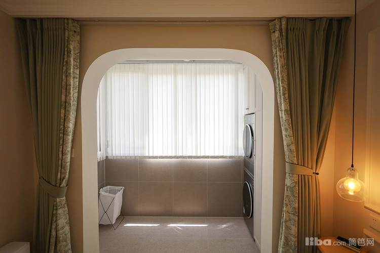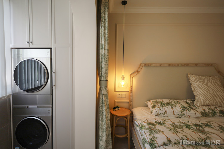 主卧和阳台打通,嵌入洗烘机,不做传统衣柜