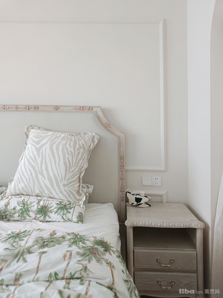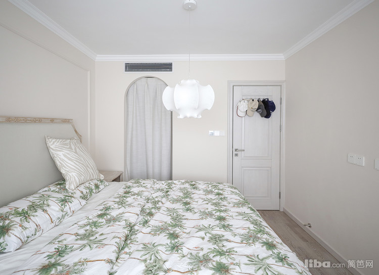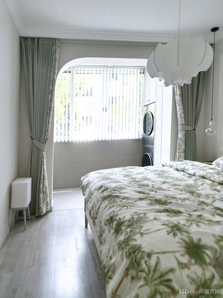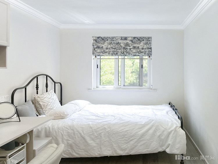 卧是业主自己住,次卧主要用来办公,娱乐招待亲朋好友。次卧用铁艺床和布艺窗帘,简约田园风。主卧和阳台打通