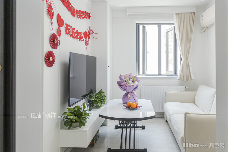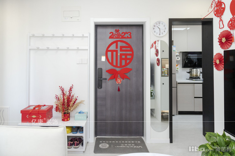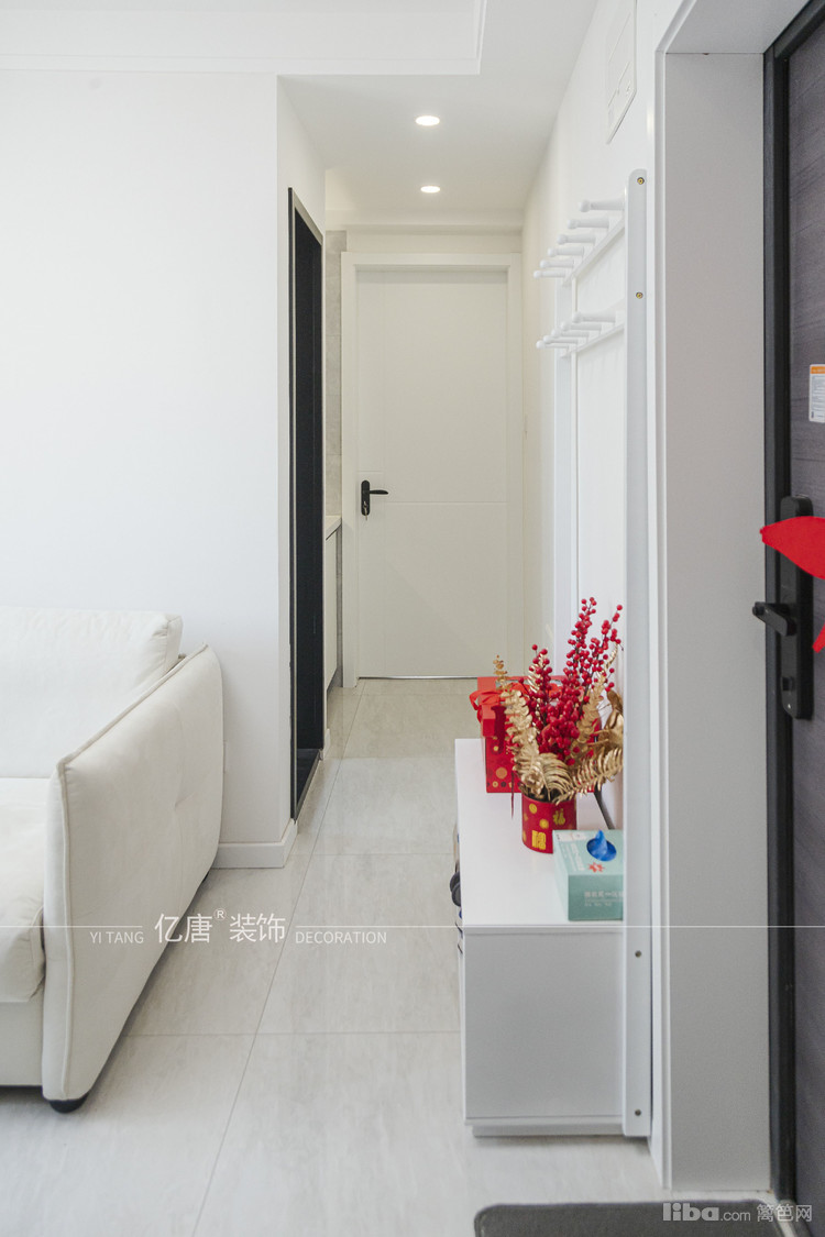 利用次卧衣柜设计小玄关储物柜,由于空间有限,舍弃了餐厅保留了客厅的格局,采用的升降茶几替代餐桌的功能。