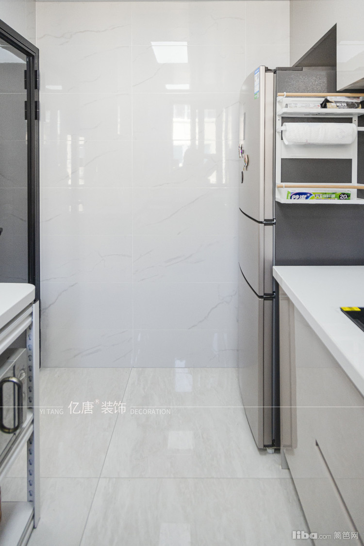万万没想到,这个4㎡左右的小厨房还能做小U型,两遍分别是炒菜配才区和小家电区域,中间是洗菜区,一边灶台宽度550mm,电器台面深度380mm。