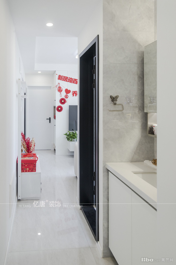 原始户型卫生间小又较拥挤,现在卫生间干湿分离,利用过道空间内嵌卫生间洗漱台,这样过道空间不浪费,全家人使用起来卫生间也不拥挤。