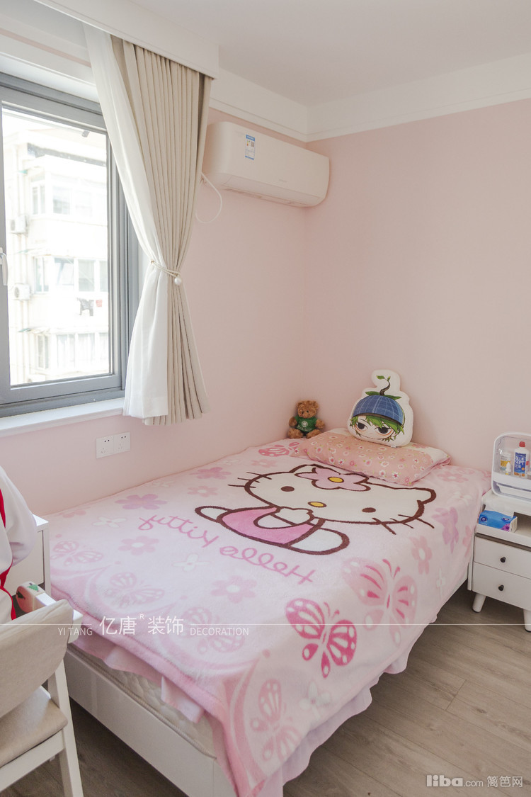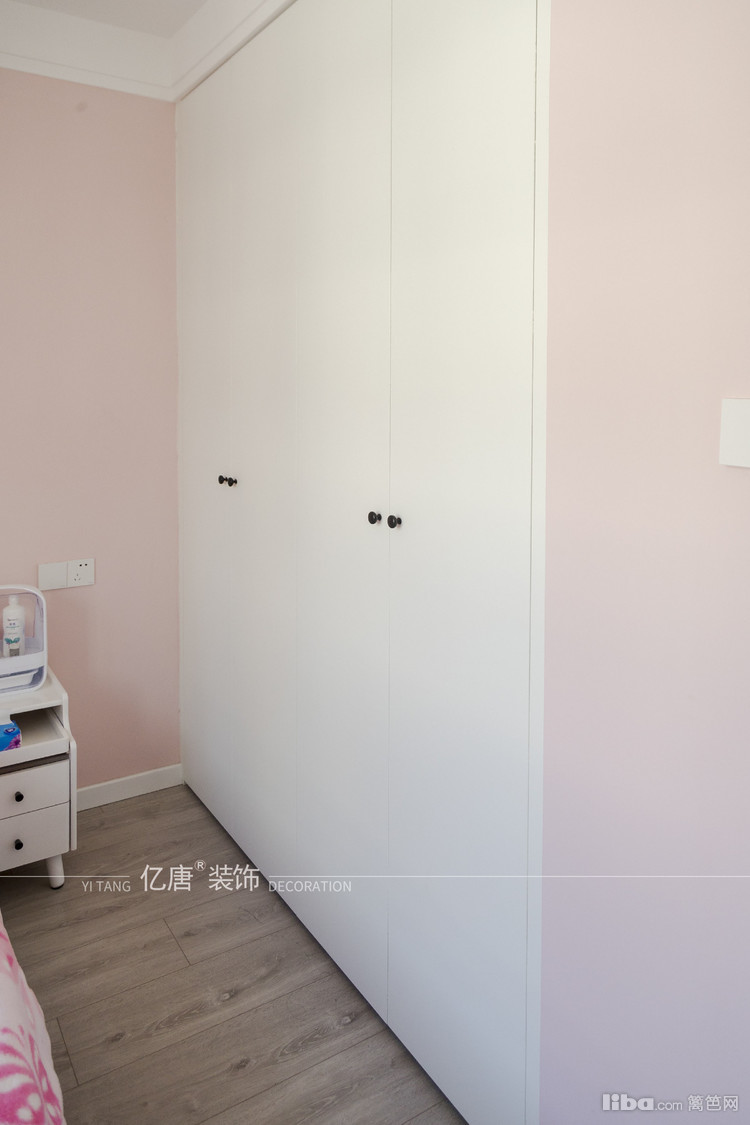 次卧是女儿房,借用原客厅部分空间做内嵌衣柜,美观实用,和外面的玄关柜平齐,一个空间两种用法,次做到使用、美观双赢。
